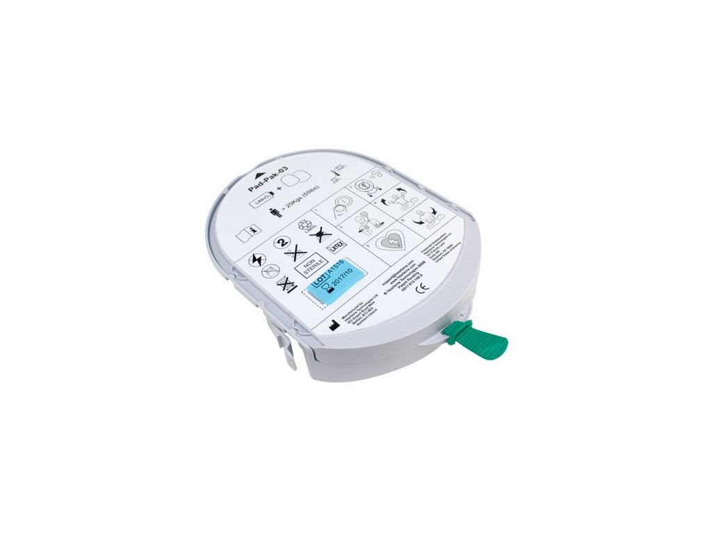 • HeartSine má praktický úložný prostor Pad-Pak, který je určen pro ložení elektrod a baterie.