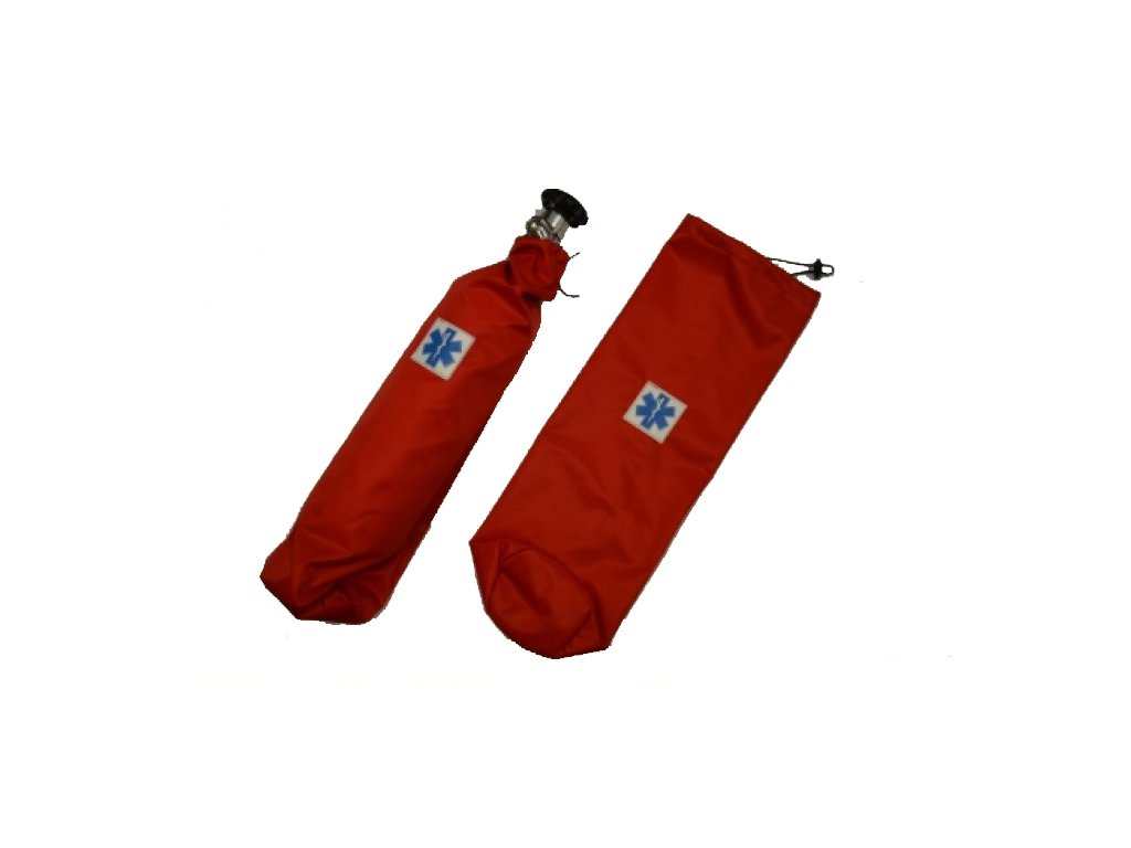 Kvalitní obal na kyslíkovou lahev 2l. vyrobený z pevné látky se zátěrem.