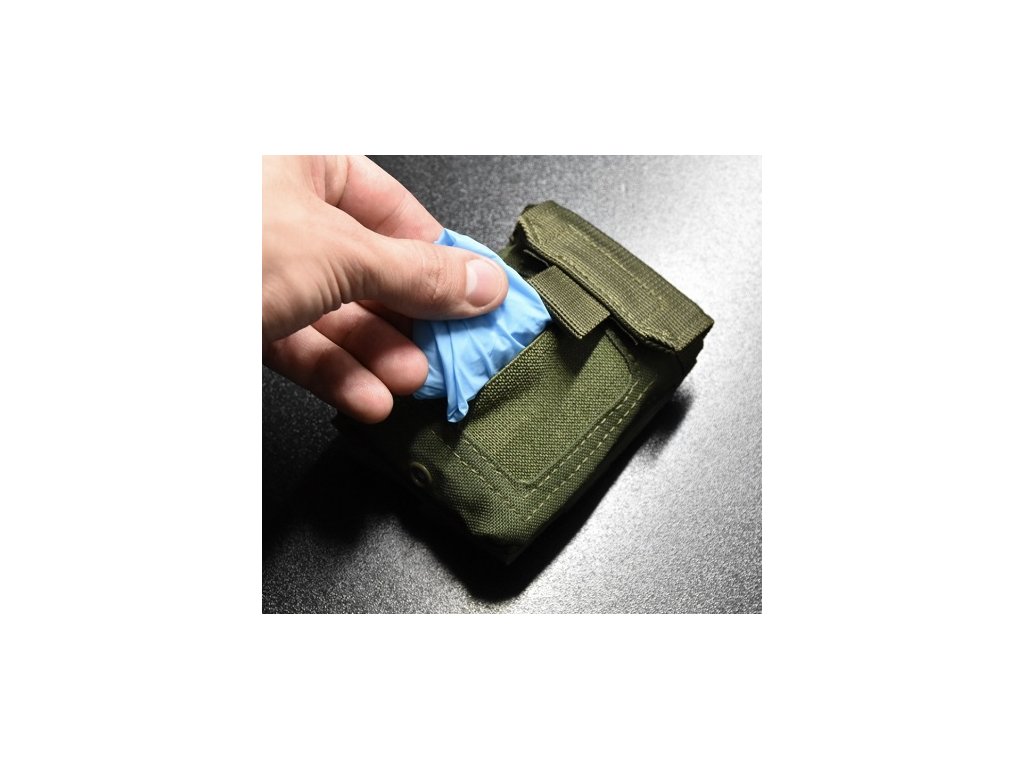 Condor EMT Glove pouch je praktické pouzdro na zdravotnické jednorázové rukavice. Pouzdro má otvor pro rychlý přístup k rukavicím bez nutnosti otevírat jakoukoliv uzavřenou kapsu. Pouzdro Condor EMT Glove pouch lze připevnit pomocí MOLLE systému k batohu nebo jej lze jednoduše upevnit na opasek. Zavírá se na suchý zip, z boku má elastické chlopně pro rychlý přístup k rukavicím. Pouzdro pojme 3 až 4 páry rukavic. Doporučujeme rukavice vložit vhodně poskládané - prsty směřujícími směrem ven. Díky tomu budete následně vytahovat jednu rukavici po druhé. Pouzdro Condor EMT Glove je vyrobeno z extrémně odolného a pevného materiálu 1000D Cordura Nylon a je k dostání ve třech praktických barvách - černé, olivové, námořnické a coyote.