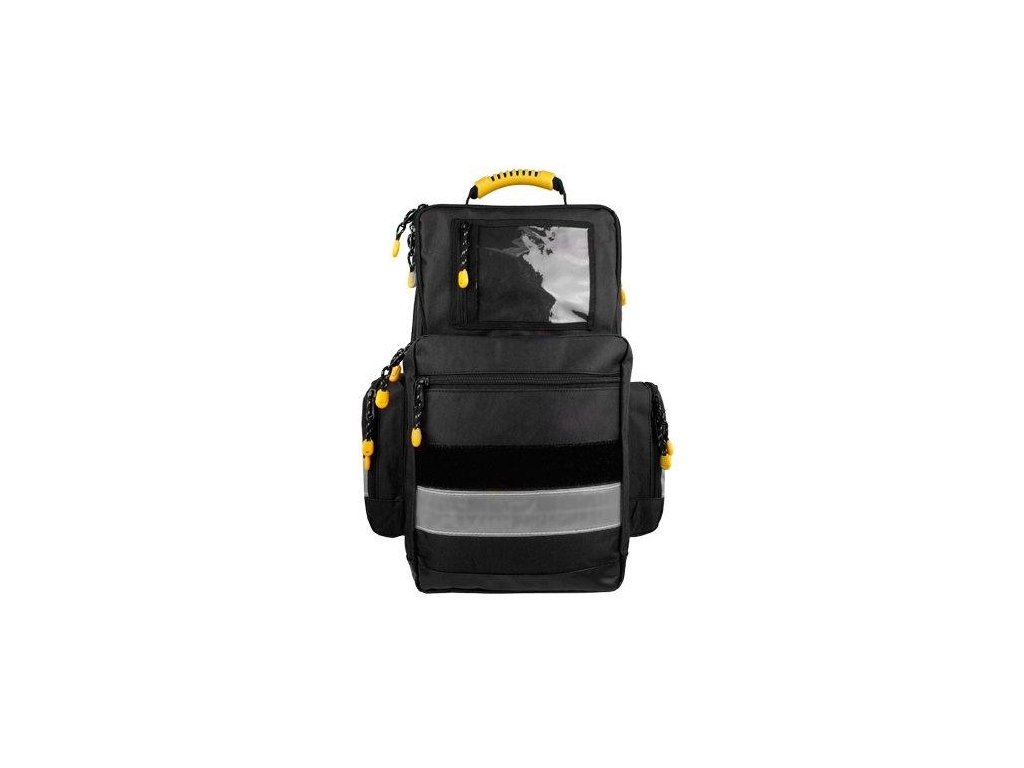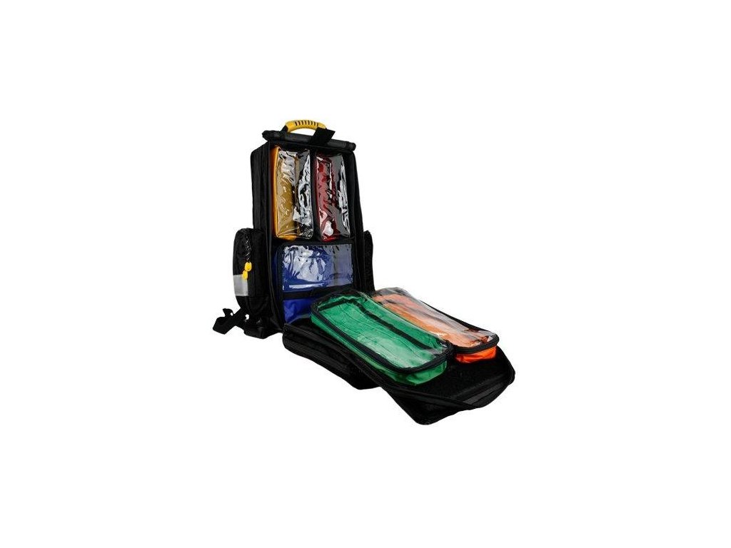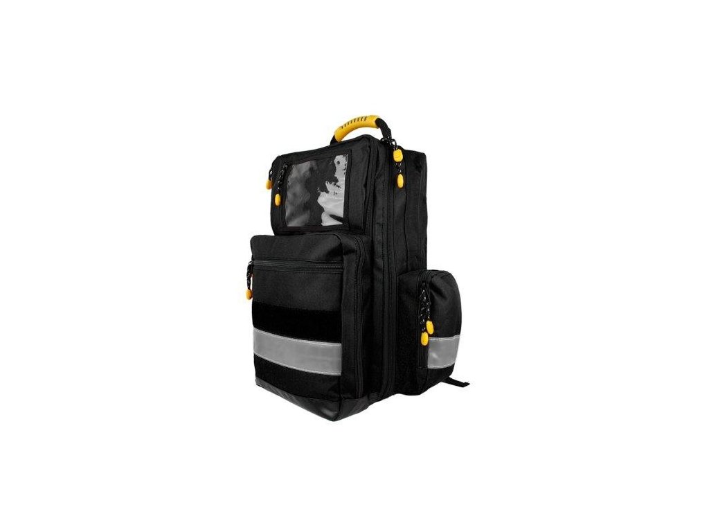 Profesionální záchranářský batoh pro ozbrojené složky, lékaře a záchranáře, vyroben z pevného a voděodolného materiálu. Velký úložný prostor, variabilita členění, pružné úchyty na nástroje a zdravotnický materiál. Vnější kapsa na AED. Reflexní prvky. Polstrovaná záda a úchyty, pevné dno.