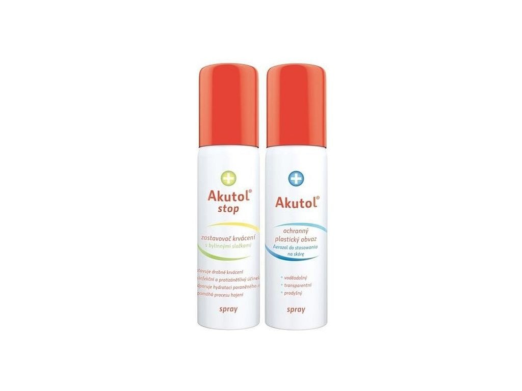 Akutol™ sprej je ochranný plastický obvaz bez zápachu ve spreji s hnacím plynem. Používá se k rychlému ošetření oděrek a drobných povrchových poranění. Po nanesení do dvou minut zasychá a vytváří voděodolnou vrstvu.