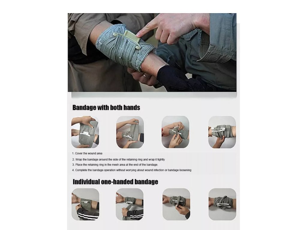 Emergency Bandage 4" je plnohodnotný sterilní tlakový obvaz s třmenem pro vytvoření tlakové vrstvy, izraelského typu.