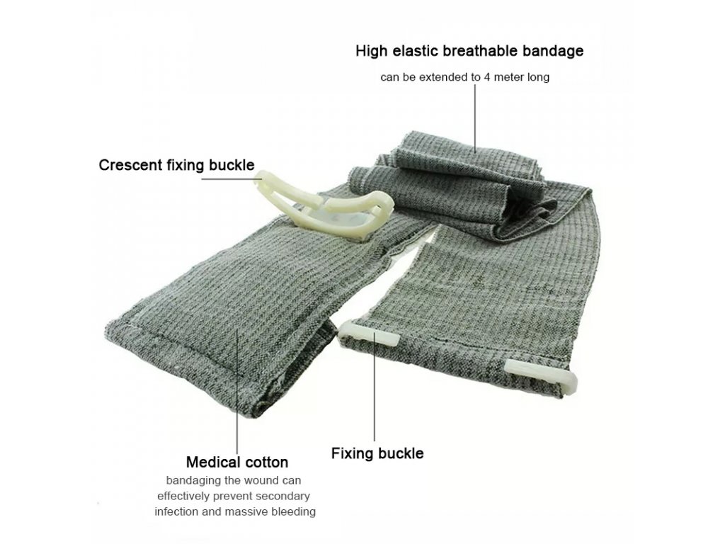- Přirozená délka je 2,1 metru a délka prodloužení je 4 metry. Vysoká elasticita může být také použit jako elastické obinadlo pro fixaci.